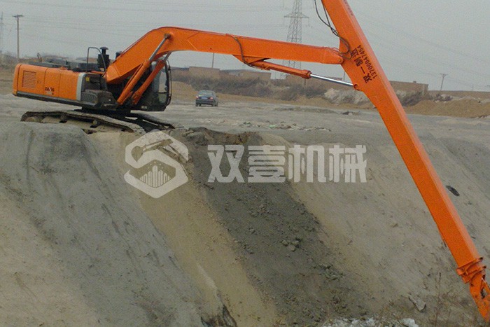 雙壹公司備有多臺長臂挖掘機,15-200米各種長度,一站式解決您的深坑挖掘難題。