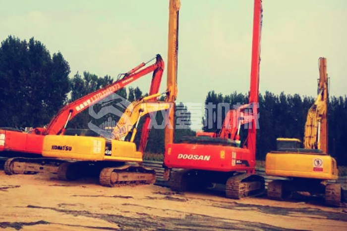 雙壹公司備有多臺長臂挖掘機,15-200米各種長度,一站式解決您的深坑挖掘難題。