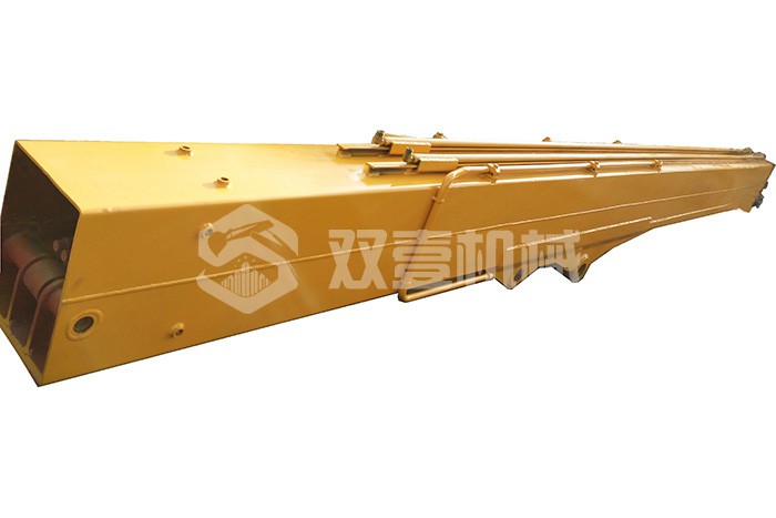 兩節(jié)伸縮臂是雙壹機械2005年自主研發(fā)的突破性產(chǎn)品,被多家同行模仿制造,從未被超越;臂長度19米,采用高噸位的三機聯(lián)動折彎設(shè)備折成U型,雙U型對接的焊接方式。
