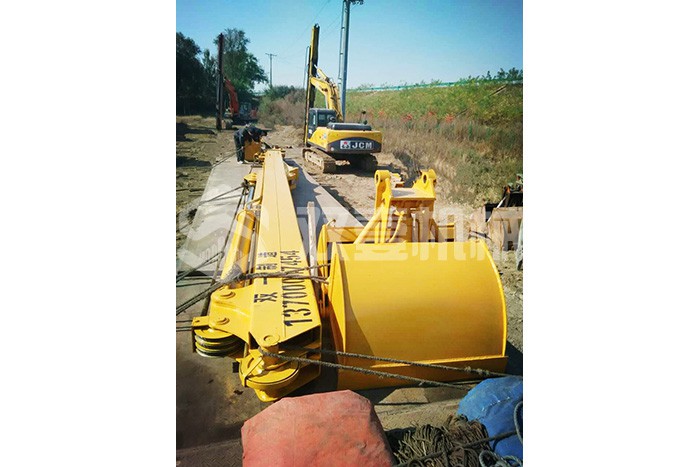 超長四節(jié)臂:總長度可達(dá)48米,臂內(nèi)可再伸出3節(jié),施工深度42.5米,配帶貝殼斗1.8立方或挖掘斗1.0立方。