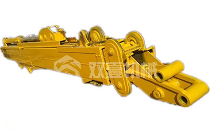 三節臂:25T級挖掘機三節臂可挖深24米,35T級挖掘機三節臂可挖深32米;臂體采用700L或960高強度板材,滑輪安裝結構在臂外部,便于保養維修,結構設計尺寸大,延長使用壽命。