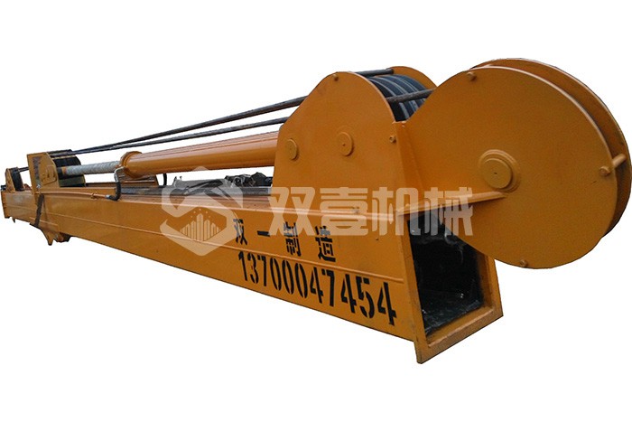 三節臂:25T級挖掘機三節臂可挖深24米,35T級挖掘機三節臂可挖深32米;臂體采用700L或960高強度板材,滑輪安裝結構在臂外部,便于保養維修,結構設計尺寸大,延長使用壽命。