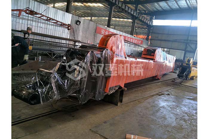 三節臂:25T級挖掘機三節臂可挖深24米,35T級挖掘機三節臂可挖深32米;臂體采用700L或960高強度板材,滑輪安裝結構在臂外部,便于保養維修,結構設計尺寸大,延長使用壽命。